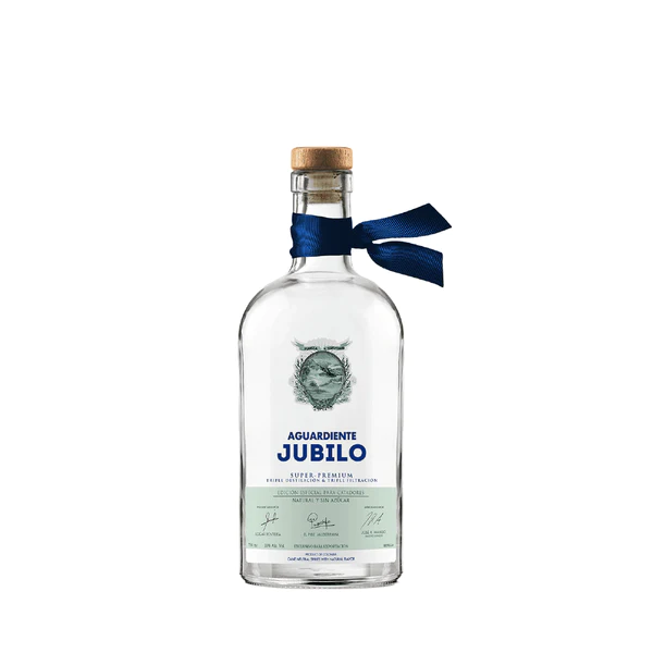 Jubilo Es el primer Aguardiente Súper Premium de Colombia de alcohol de caña triple destilado y filtrad o, producido en pequeños lotes con el agua purísima del parque de los